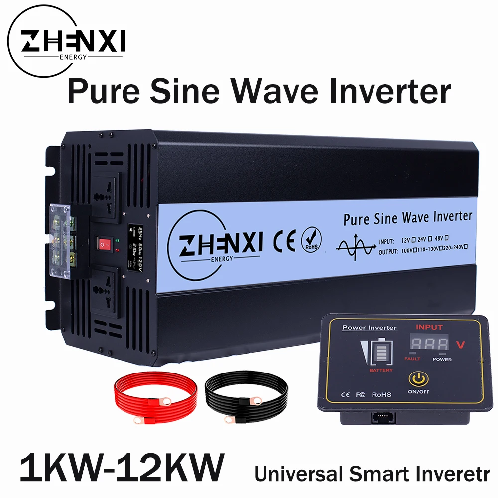 ZHENXI 12000 Вт инвертор чистой синусоидальной волны, 12 В, 24 В, 48 В постоянного тока в переменный ток, 220 В, 230 В, 100 В, 110 В, 120 В для дома, инвертор для автомобиля на колесах, инверторный источник питания для