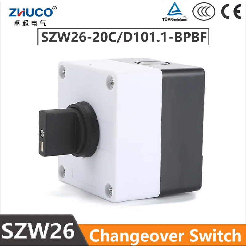 ZHUCO SZW26/LW26-20 ON OFF ON 20A 660V 1 Pole 4 Screws Rotary Cam Changeover Switch With Waterproof And dustproof Sealed Box