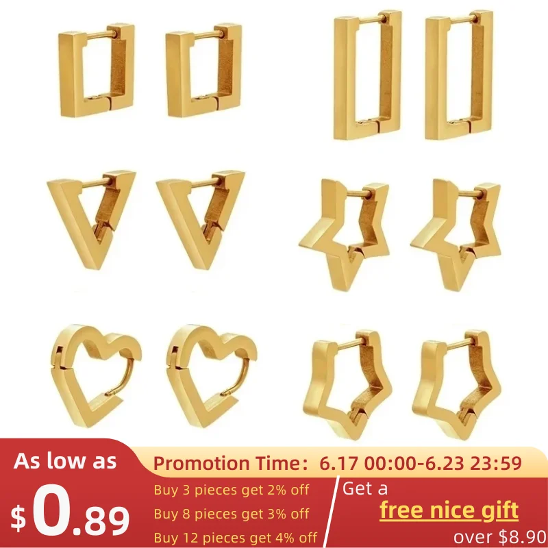 ZHUKOU золотистые серьги-кольца маленькие серьги-кольца из нержавеющей стали, геометрические треугольные прямоугольные серьги, оптовая продажа VE492