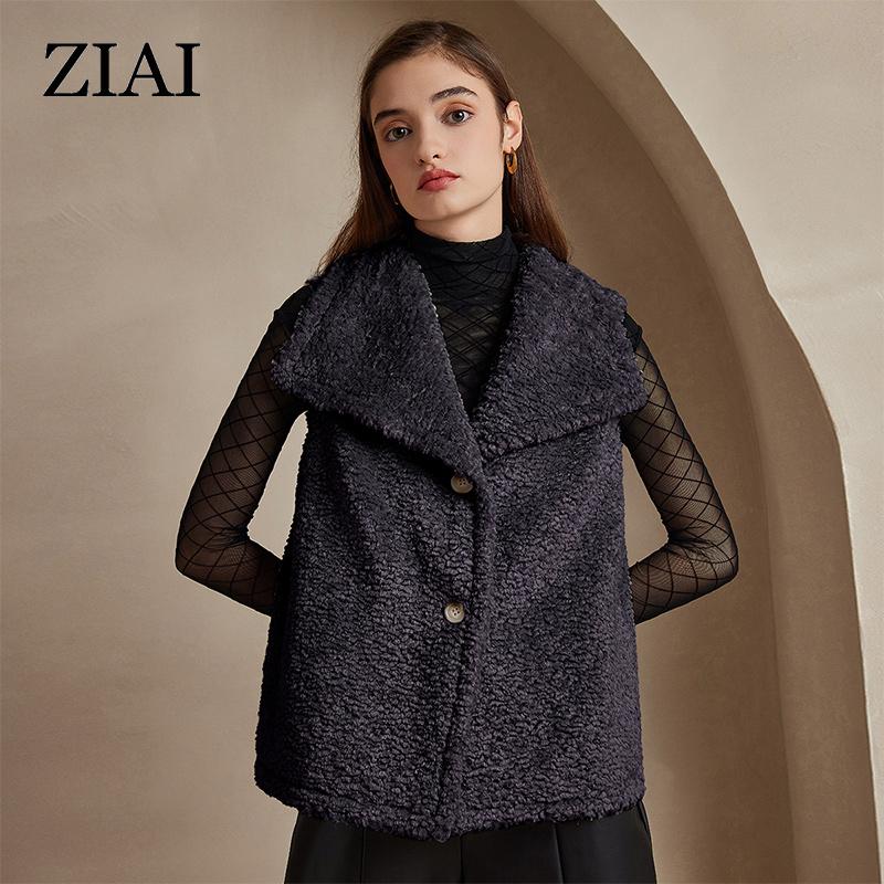 ZIAI Женский жилет Тедди Пальто Безрукавка Жилет Пальто Однотонный Флис Меховая Куртка Стильная Женская Толстая Теплая Повседневная Парка Тренд 20346 XXL чёрный