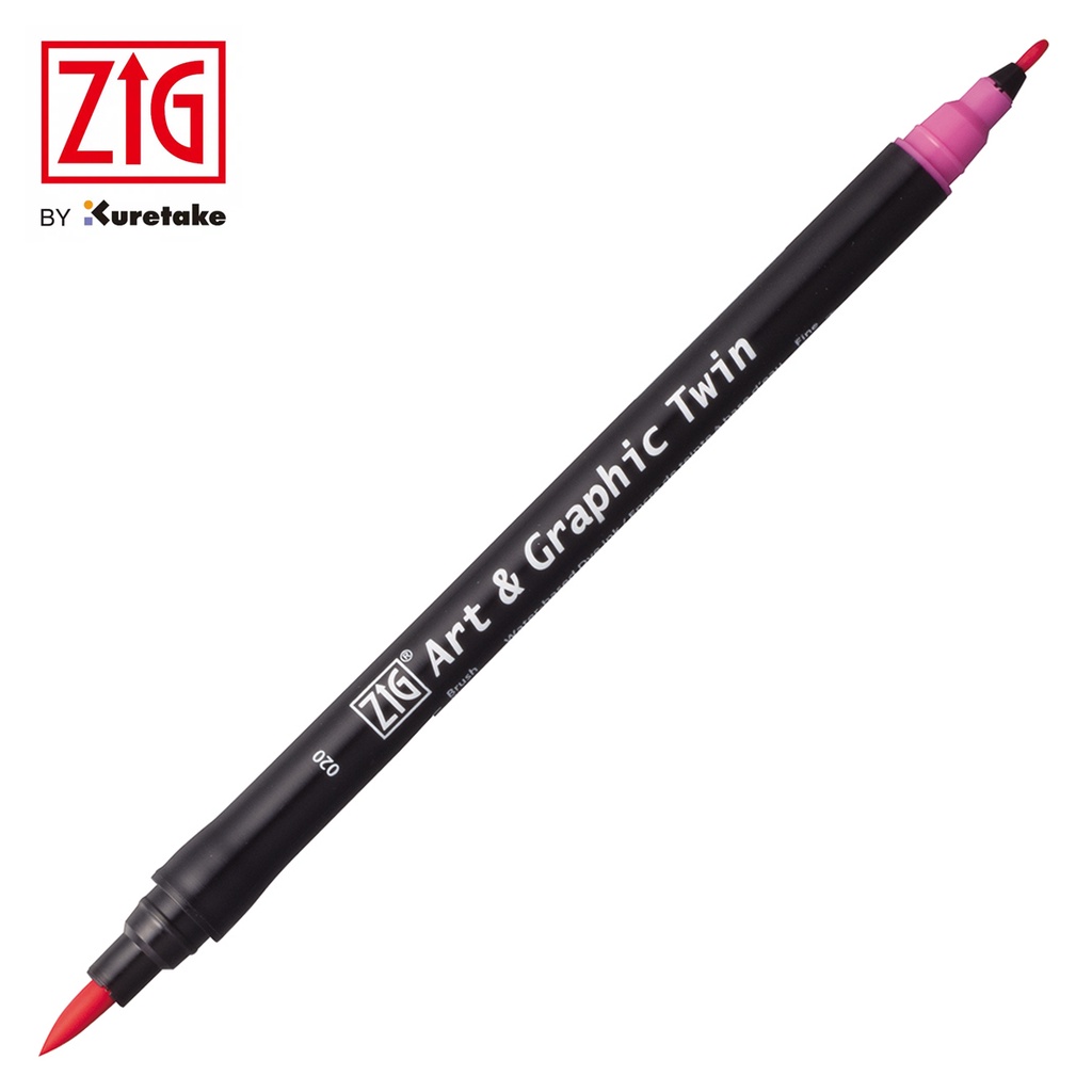 ZIG Art & Graphic Twin is a dual tipped marker with a fine tip for details and a flexible brush tip for larger coverage. Markers use a water-based dye formula allowing colors to blend easily.