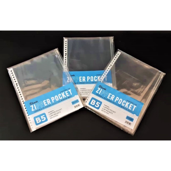 ZIPPER MAP ZIP BAG POCKET SLETING B5 BINDER NOTE 26 RING PEN CASE TEMPAT PENSIL