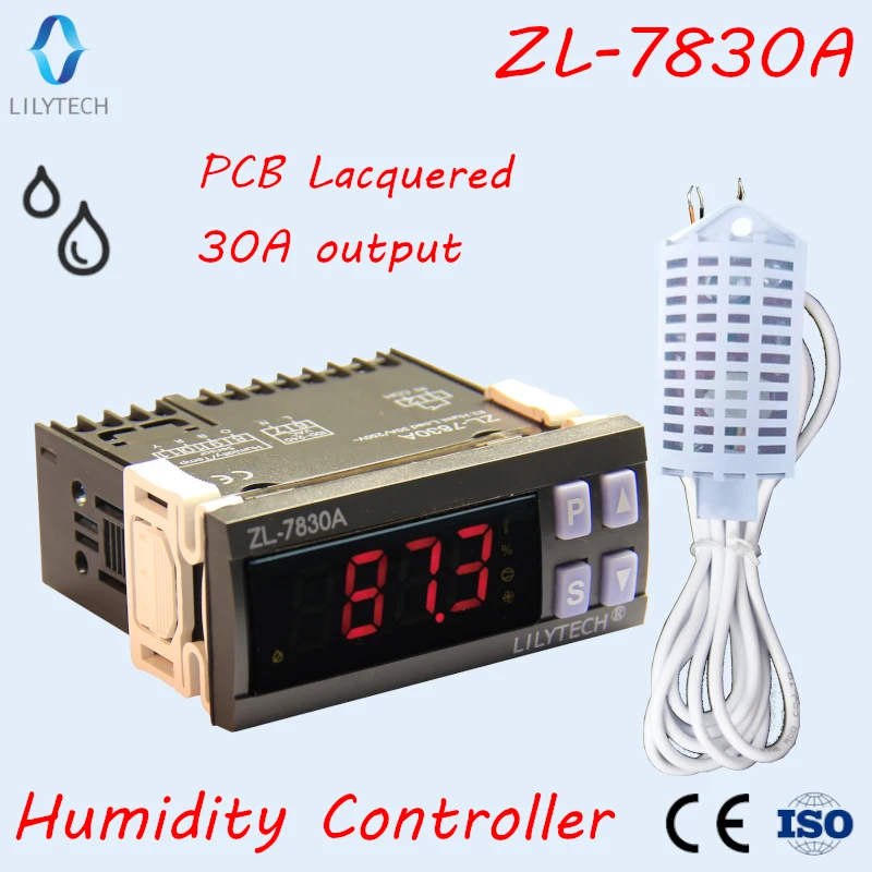 ZL-7830A, 30A реле, 100-240Vac, цифровой, регулятор влажности, гигростат, Lilytech