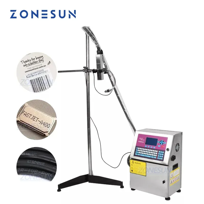 ZONESUN Automatic Printer PVC Plastic Bottle Carton Date Inkjet Printer Printing Machine With Bracket For Production Line