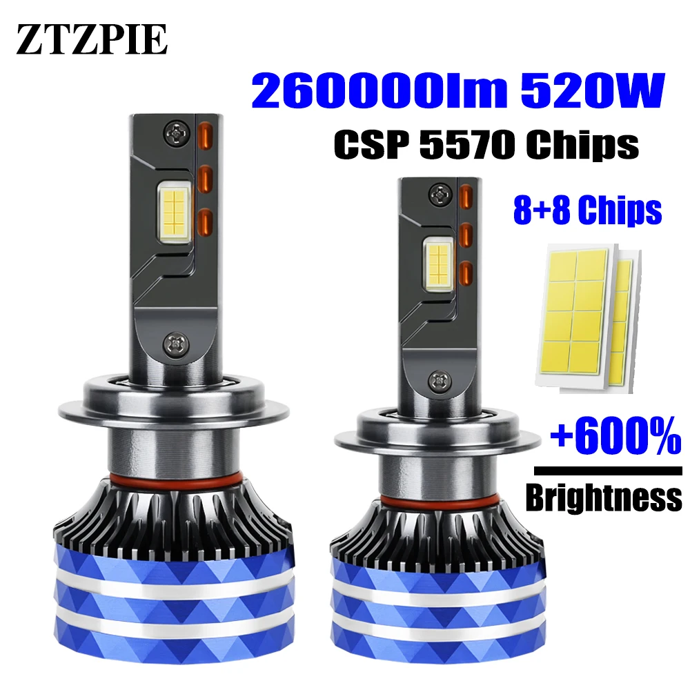 ZTZPIE 6000K HB3 HB4 9005 9006 H1 H7 H4 H11 9012 лампа в светодиодные лампы Canbus CSP 5570 мощная Автомобильная фара светильник 520W 260000LM 12V