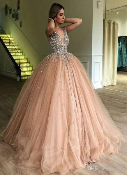 vestidos de 15 anos ball gown quinceanera dress heavy beaded crystals deep v neck sweet 16 dresses evening prom gowns5373305, Blue;red