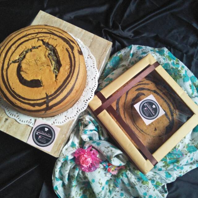 Marmer cake dengan motif belang zebra. Ukuran loyang diameter 18cm. Tanpa tambahan pemanis dan pengawet. Daya tahan suhu ruangan 3-4hari, didalam pendingin 1 minggu.