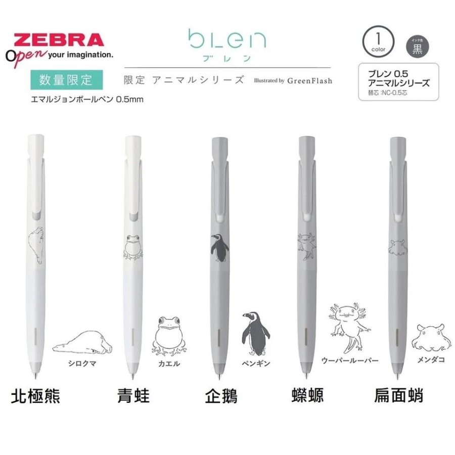 Zebra bLen Animal Series Ballpoint Ink Pen 0.5mm Pulpen Stress Free Writing Limited Edition