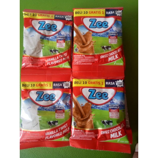 Zee Sachet Coklat Vanila 10X40gr Zee Sachet Coklat Vanila 10 Sachet free 1 sachet Susu Zee adalah susu formula anak yang diformulasikan khusus untuk pertumbuhan. Minum Zee dipercaya bisa membantu meninggikan badan dan mencapai bobot tubuh yang ideal. Susu Zee dirancang khusus untuk pertumbuhan anak sesuai dengan usianya.