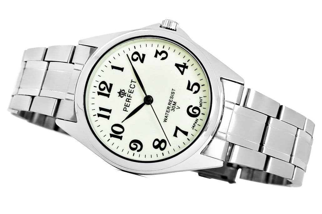 Zegarek Męski PERFECT R13 Oficjalna Polska dystrybucjaOpis produktu:Marka: PerfectMechanizm: Kwarcowy Miyota Citizen JapanTarcza: Analogowa Koperta: Wysokogatunkowa stalSzkiełko: Mineralne o podwyższonej odporności na zarysowania i przypadkowe uderzeniaBransoleta: Stal szlachetna, regulowanaPodświetlenie: FluorescencjaWodoszczelność: 3 ATMAntyalergiczny: Tak - nie zawiera niklu - doskonały dla alergikówOryginalność: Na denku zegarek posiada wygrawerowane informacje od producenta, świadczące o oryginalności.Wymiary w mm:Koperta: średnica: 34 Tarcza: średnica: 28Grubość: 7,7 Bransoleta: 18Obwód: max.200Kolorystyka:Koperta: srebrnaTarcza: biała, fluorescencjaIndeksy: czarne Wskazówki: czarne Sekundnik: czarnyBransoleta: srebrna