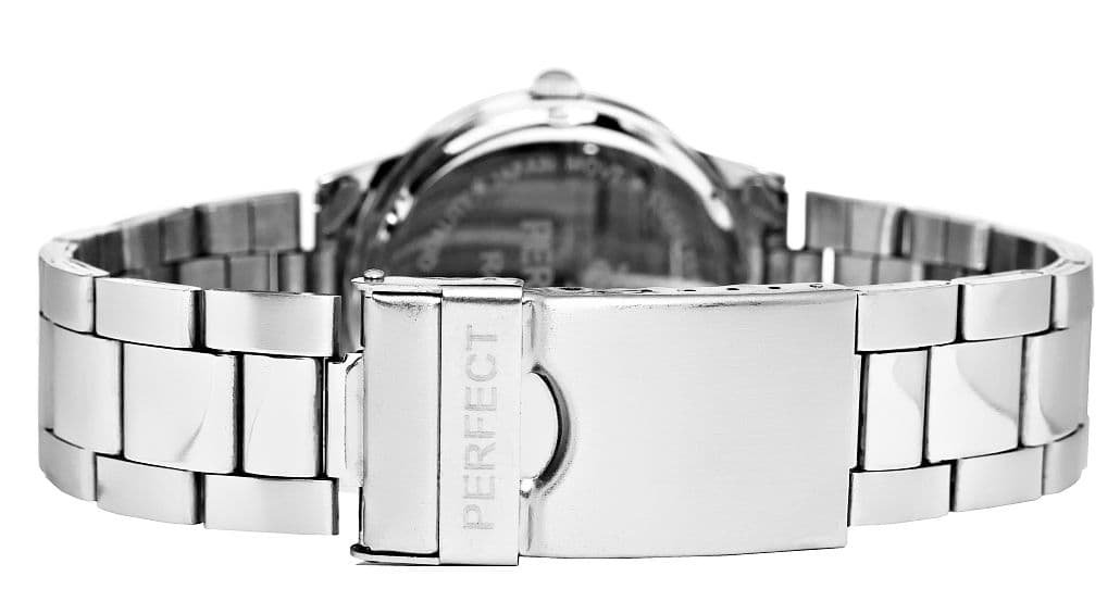 Zegarek Męski PERFECT R411-2 Oficjalna Polska dystrybucjaOpis produktu:Marka: PerfectMechanizm: Kwarcowy Miyota Citizen JapanTarcza: Analogowa Koperta: Wysokogatunkowa stalSzkiełko: Mineralne o podwyższonej odporności na zarysowania i przypadkowe uderzeniaBransoleta: Stal szlachetna, regulowanaWodoszczelność: 3 ATMAntyalergiczny: Tak - nie zawiera niklu - doskonały dla alergikówOryginalność: Na denku zegarek posiada wygrawerowane informacje od producenta, świadczące o oryginalności.Wymiary w mm:Koperta: średnica: 38 Tarcza: średnica: 33Grubość: 8,0 Bransoleta: 20Obwód: max.220Kolorystyka:Koperta: srebrnaTarcza: białaIndeksy: niebieskie, metaliczne Wskazówki: niebieskie, metaliczne Sekundnik: niebieski, metaliczneBransoleta: srebrna