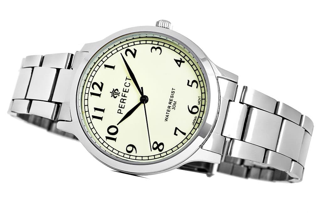 Zegarek Męski PERFECT R422-2 Oficjalna Polska dystrybucjaOpis produktu:Marka: PerfectMechanizm: Kwarcowy Miyota Citizen JapanTarcza: Analogowa Koperta: Wysokogatunkowa stalSzkiełko: Mineralne o podwyższonej odporności na zarysowania i przypadkowe uderzeniaBransoleta: Stal szlachetna, regulowanaPodświetlenie: FluorescencjaWodoszczelność: 3 ATMAntyalergiczny: Tak - nie zawiera niklu - doskonały dla alergikówOryginalność: Na denku zegarek posiada wygrawerowane informacje od producenta, świadczące o oryginalności.Wymiary w mm:Koperta: średnica: 37 Tarcza: średnica: 31Grubość: 8,1 Bransoleta: 18Obwód: max.220Kolorystyka:Koperta: srebrnaTarcza: biała, fluorescencjaIndeksy: czarne Wskazówki: czarne Sekundnik: czarnyBransoleta: srebrna