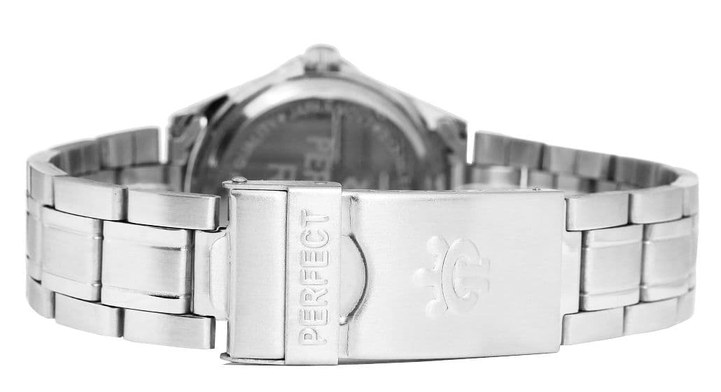 Zegarek Męski PERFECT R45 Oficjalna Polska dystrybucjaOpis produktu:Marka: PerfectMechanizm: Kwarcowy Miyota Citizen JapanTarcza: Analogowa Koperta: Wysokogatunkowa stalSzkiełko: Mineralne o podwyższonej odporności na zarysowania i przypadkowe uderzenia, sferyczneBransoleta: Stal szlachetna, regulowanaPodświetlenie: FluorescencjaWodoszczelność: 3 ATMAntyalergiczny: Tak - nie zawiera niklu - doskonały dla alergikówOryginalność: Na denku zegarek posiada wygrawerowane informacje od producenta, świadczące o oryginalności.Wymiary w mm:Koperta: średnica: 39 Tarcza: średnica: 27Grubość: 8,3 Bransoleta: 18Obwód: max.200Kolorystyka:Koperta: srebrnaTarcza: biała, fluorescencjaIndeksy: czarne Wskazówki: czarne Sekundnik: czerwonyBransoleta: srebrna