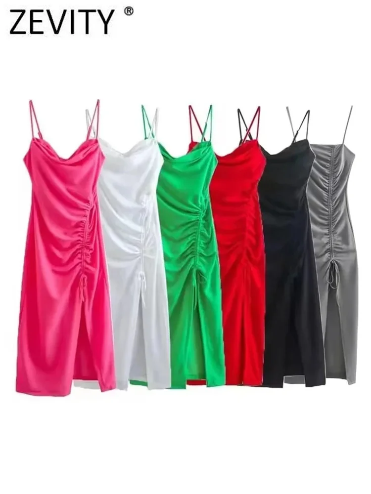 Zevity женское модное миди-платье конфетных цветов на шнуровке с тонкими бретельками женское шикарное платье на молнии с разрезом платья DS100
