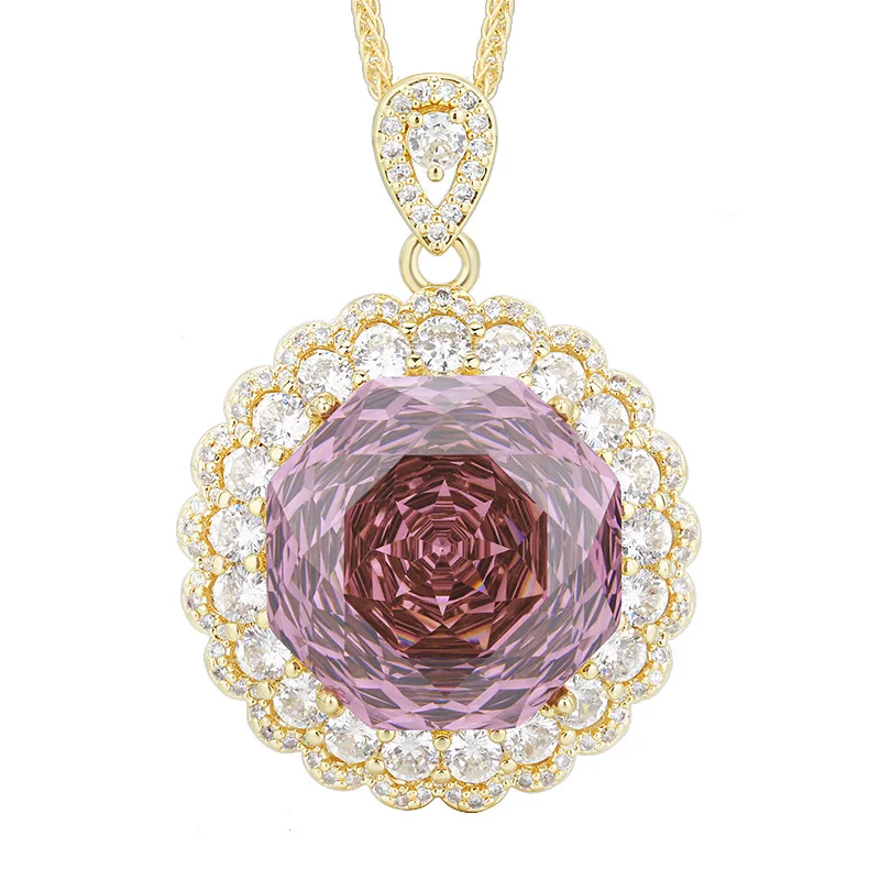 Eye - Catching Large - cut Imitation Gemstone Copper - Gold Plated Necklace, Radiate Style