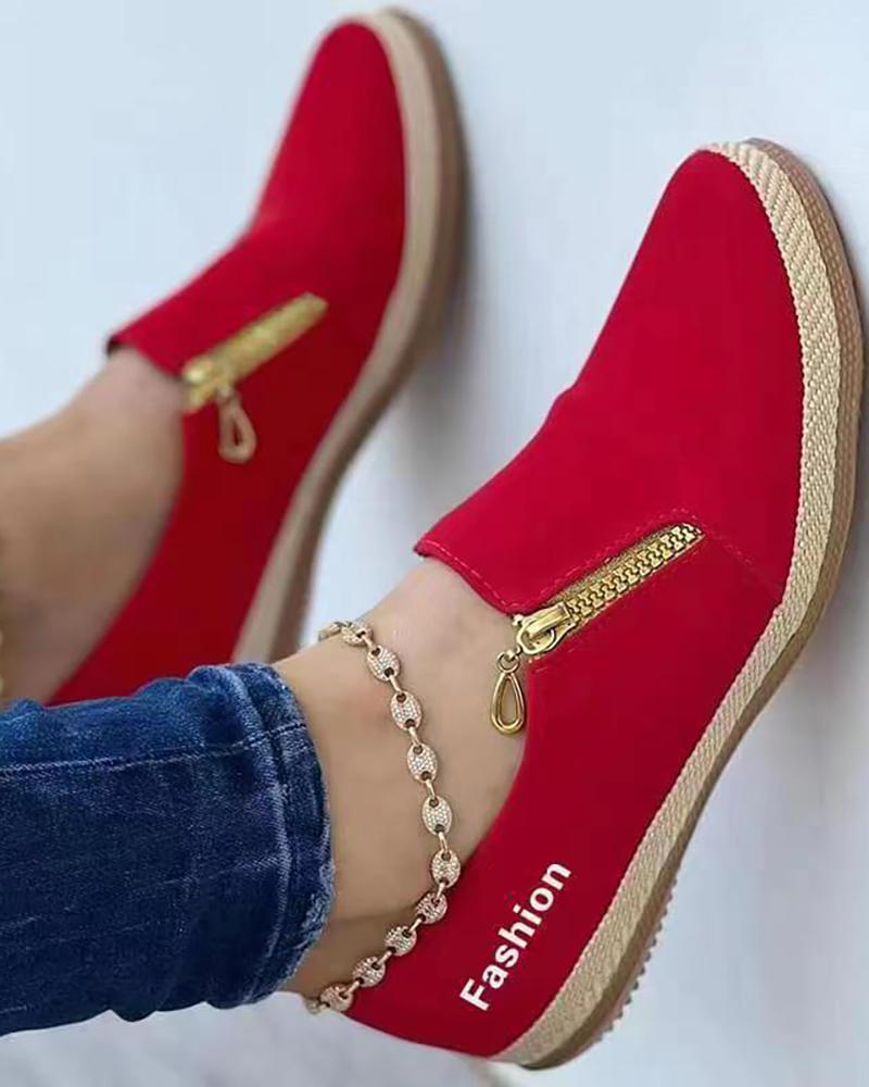 Zip Side Letter Pattern Sneakers, Red