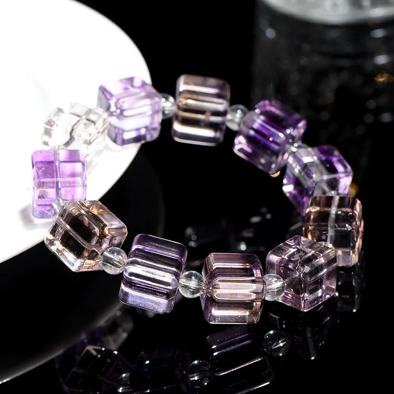 _ Фиолетовый желтый браслет, кубические бусины для женщин и мужчин 10x10 мм, Фиолетовый стрейч, кристалл AAAAAA