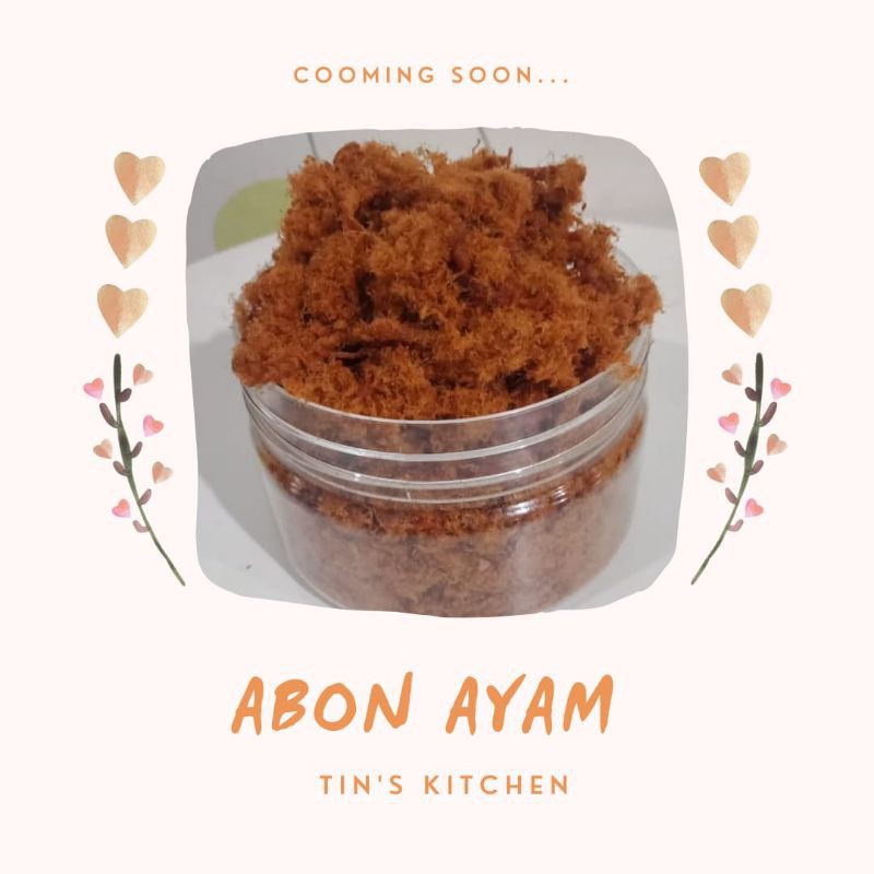 abon yang dibuat dari ayam pilihan dengan brand bumbu masak tin's kitchen, ada rasa original dan pedas.