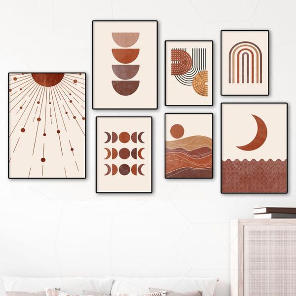 abstract mountain sun moon geometry landscape art canvas painting nordic posters and prints wall pictures for living room decor paintings