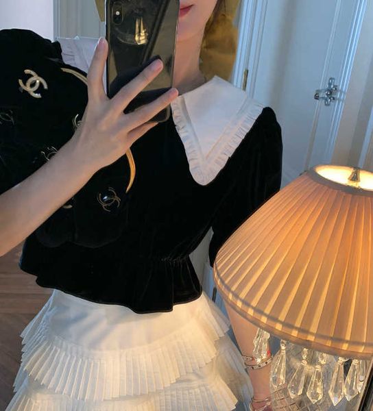 achiko vcruan french velvet plait collar short sleeve women's 2021 summer new design niche t-shirt, White