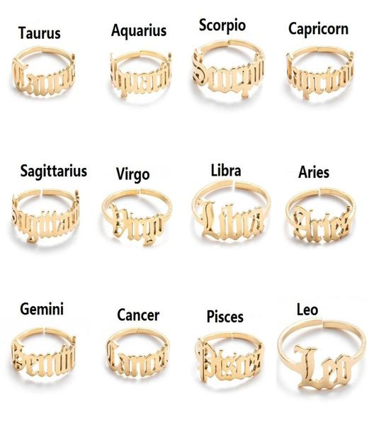 adjustable stainless steel rings 12 constellations letter ring for woman opening wedding zodiac finger ring birthday jewelry gift2025830, Silver
