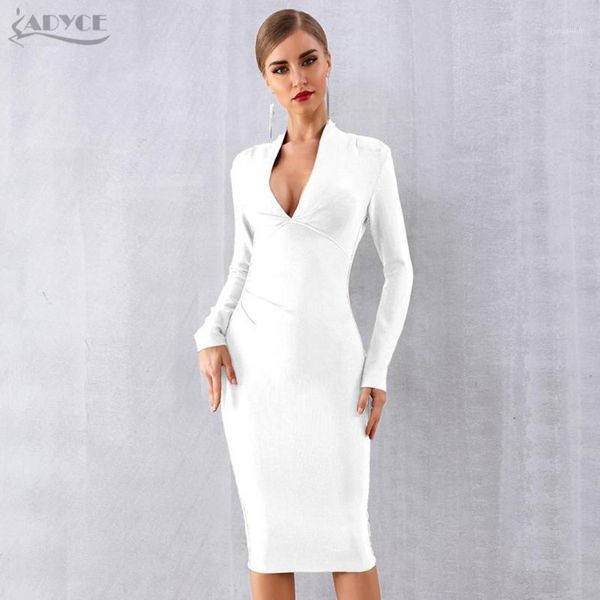 adyce 2019 new winter women bandage dress vestidos deep v long sleeve bodycon club dress midi celebrity evening party19505845, Black;gray