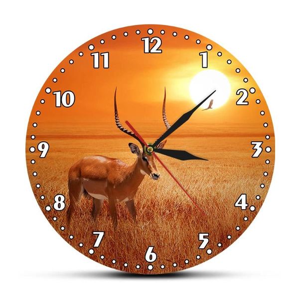 african sunset antelope wall clock tanzania wild nature modern watch serengeti national park summer landscape timepieces clocks