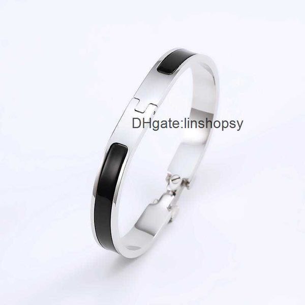 aher mas designer luxury brand enamel bracelet designer bracelet h enamel letter narrow version 8mm rose gold couple simple handpiece, Black