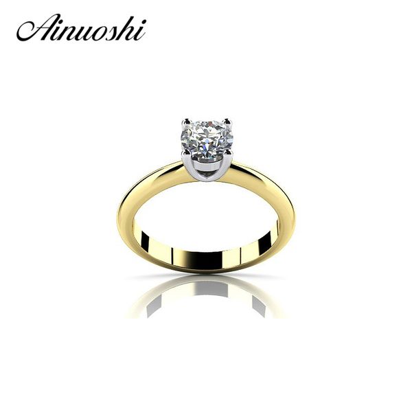 ainoushi желтого цвета золота пасьянс кольцо стерлингового серебра 925 1carat round cut создано обручальное кольцо влюбленные promise кольцо, Slivery;golden