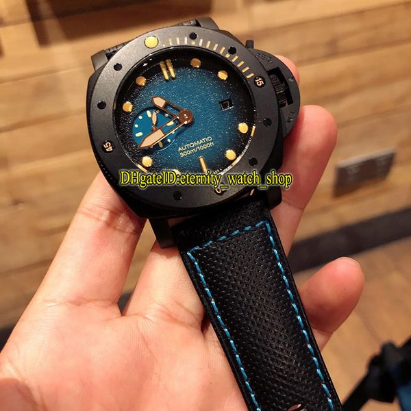 47mm dlc coated titanium metal case submersible pam00985 blue dial automatic mens watch unidirectional rotation bezel nylon sport watches, Slivery;brown