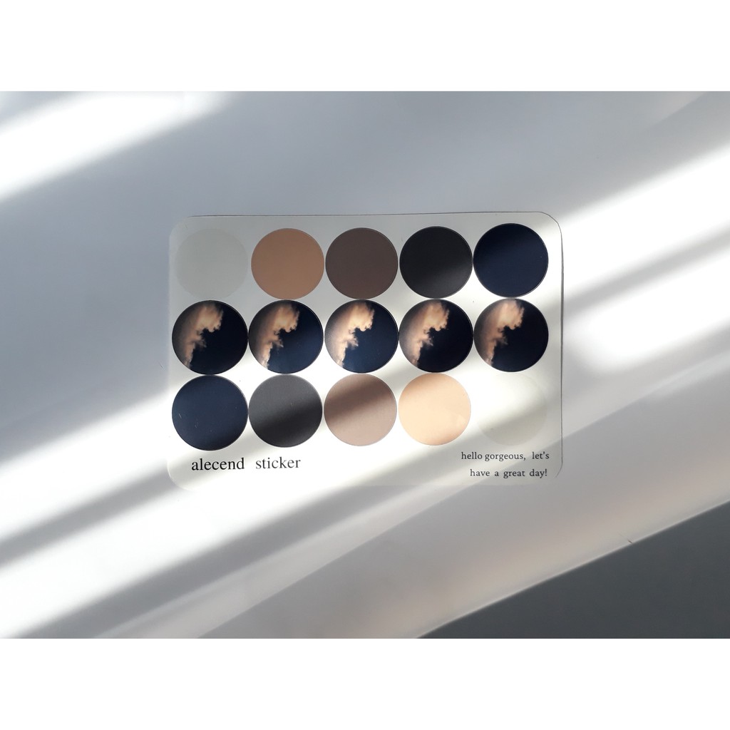 Stiker bulat dengan gambar langit dan warna-warni dari color palette yang sama dengan gambar.