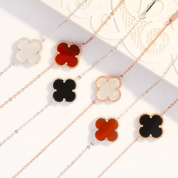 all-match silver jewelry s925 sterling silver black agate lucky four-leaf grass bracelet women's 18k rose gold plated, Golden;silver