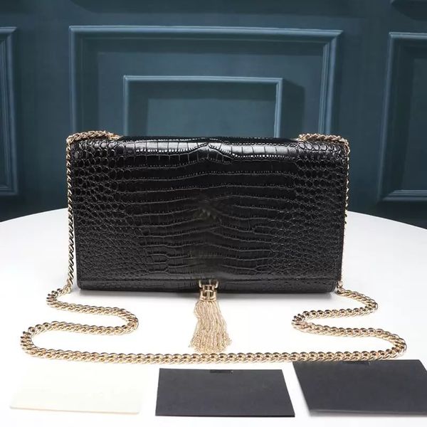 alligator pattern handbag purse luxurys chain tassel single shoulder bag genuine leather designers crossbody messenger bag, Black;red