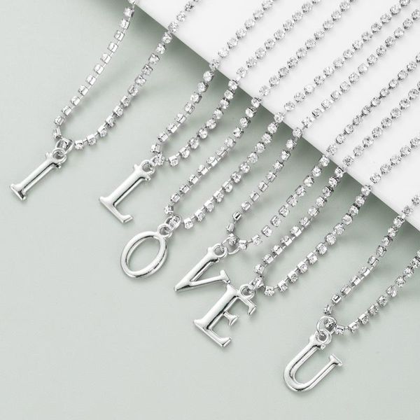 alloy rhinestone chain silver pendant 26 english letters necklaces