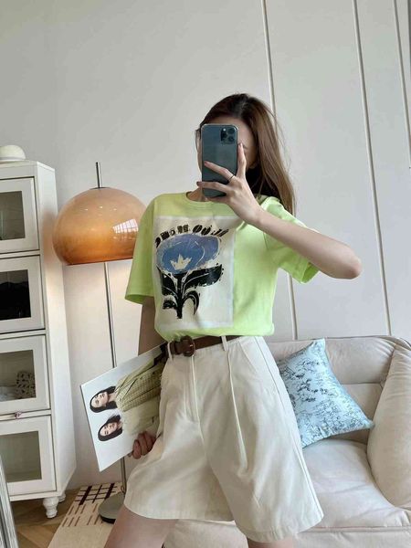 shirt icicl xiaohe 21 summer print fresh aging white apple green loose casual round neck short sleeve