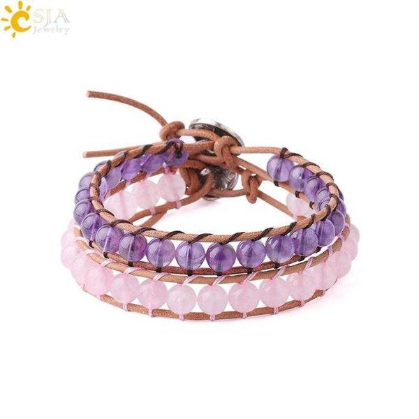 amethyst bracelet natural crystal beads string ornament fashion semi precious stone cowhide beaded, Golden;silver