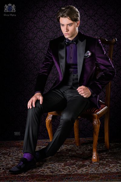 and fine velvet purple peak lapel wedding groom tuxedos men suits wedding/prom/dinner man blazer(jacket+tie+vest+pants, Black;gray