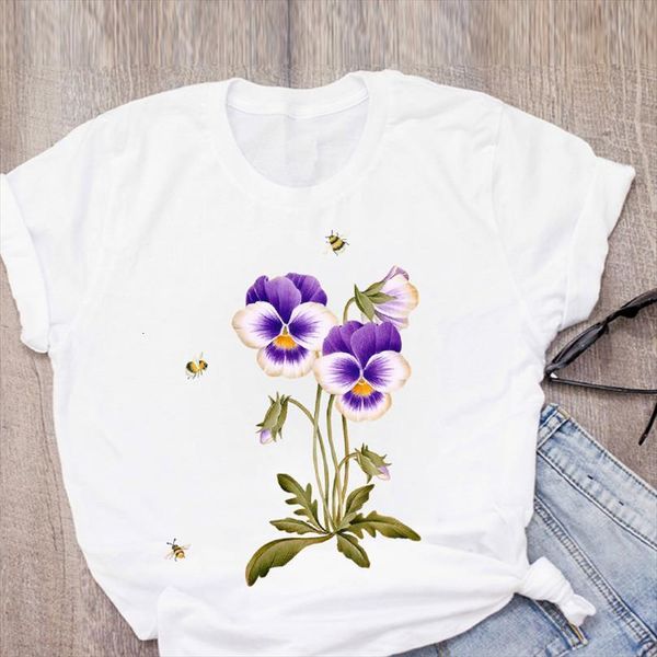 and women graphic flower mens elegant womens print short sleeve korean summer lady clothing tees female, White;black