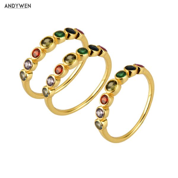 andywen 925 sterling silver rainbow colorful 7 zircons rings women circle rock punk european jewelry in fine 210608