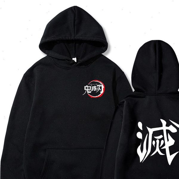 anime cartoon harajuku demon womens hoodies slayer pullover kimetsu no yaiba tanjirou zenitsu tomioka giyuu hip hop, Black