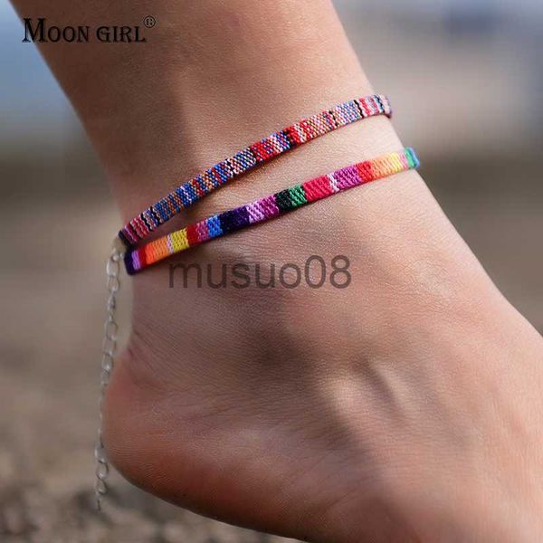 anklets 2pcs/lot bohemian anklets for men and women handmade rope friendship beh barefoot brelet on the leg chain boho foot jewelry j230815, Red;blue