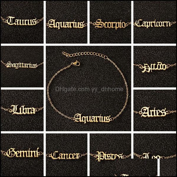 anklets wholesale zodiac sign punk charm 12 constellation classic letter ankle bracelet stainless steel jewelry women gift d yydhhome dhipj, Red;blue