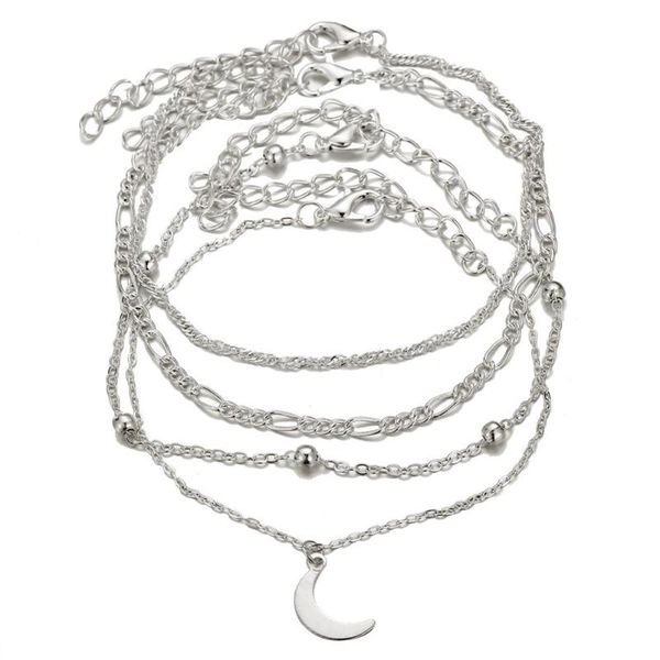 anklets xiufen 4pcs/set women anklet silver color delicate moon bright pendant fashion hand chain female jewelry, Red;blue