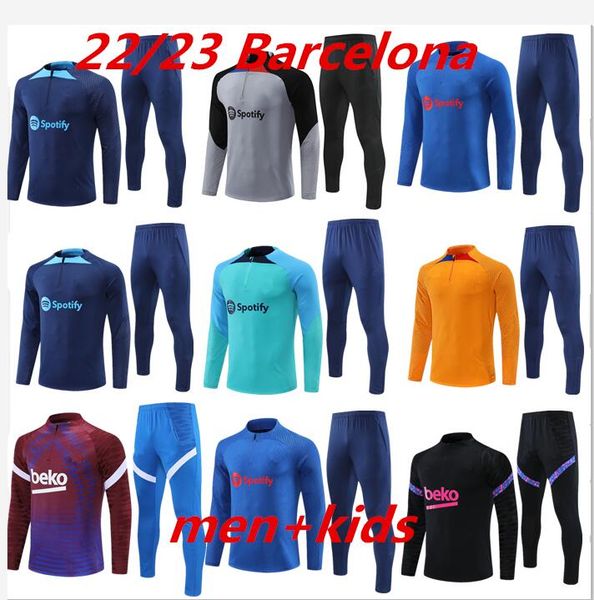 ansu fati camisetas de football 22/23 lewandowski tracksuits half zipper jacket tracksuit men and kids tracksuit barca set boys training sui, Black