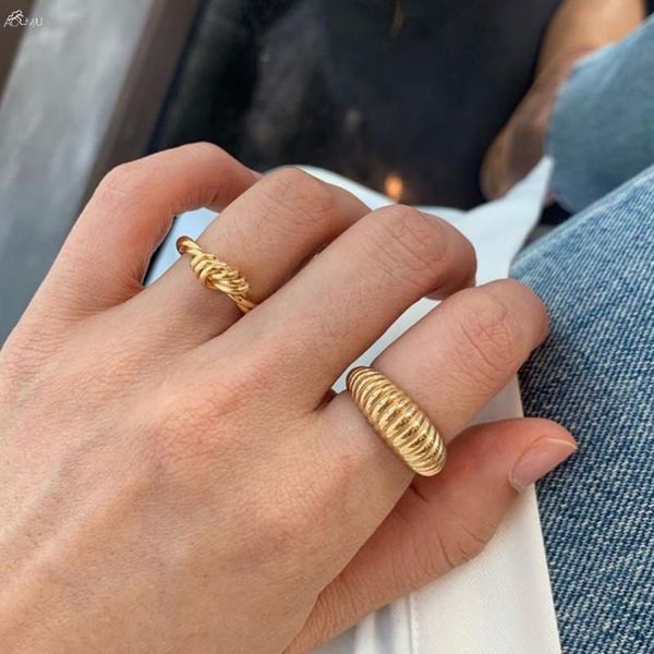 aomu 2020 простые металлические кольца кольца wave gold серебро цвет открытое кольцо для женщин мода партия ювелирные изделия подарки jelluu, Silver