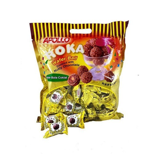 Apollo Roka Cokelat Wafer [50 Pcs] merupakan wafer Bola yang dibalut dengan rasa cokelat yang lumer di mulut, renyah, dan lezat. Apollo Cokelat Roka aman dikonsumsi dan dikemas dengan praktis, dapat dibawa kemana, dapat disesuaikan saat Anda menginap bersama keluarga di rumah.