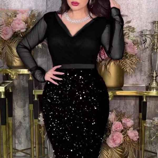 arrival v neck black long evening dresses 2022 abendkleider sequine lace formal party prom gowns, Black;red