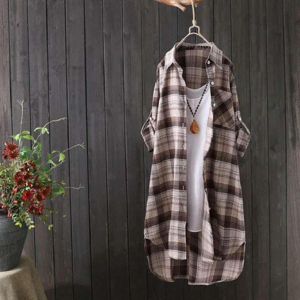artsy plaid shirt for women mid length spring style long sleeved all matching loose large sized womens, White