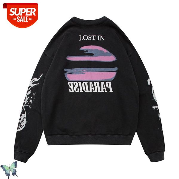 askyurself washed distressed craft purple sunset smoke print round neck pullover sweater men women askyurself sweatshirts jacket #ym9n, Black