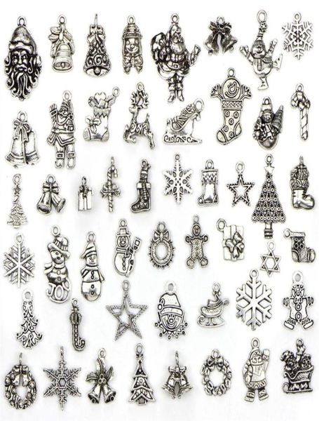 assorted 50 designs christmas charms santa claus snowman elk snowflake tree pendant charm diy christmas jewelry gift making 50pcs 5091995, Black